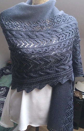 Niveau requis : Intermédiaire + (torsades, rangs raccourcis, dentelle).
