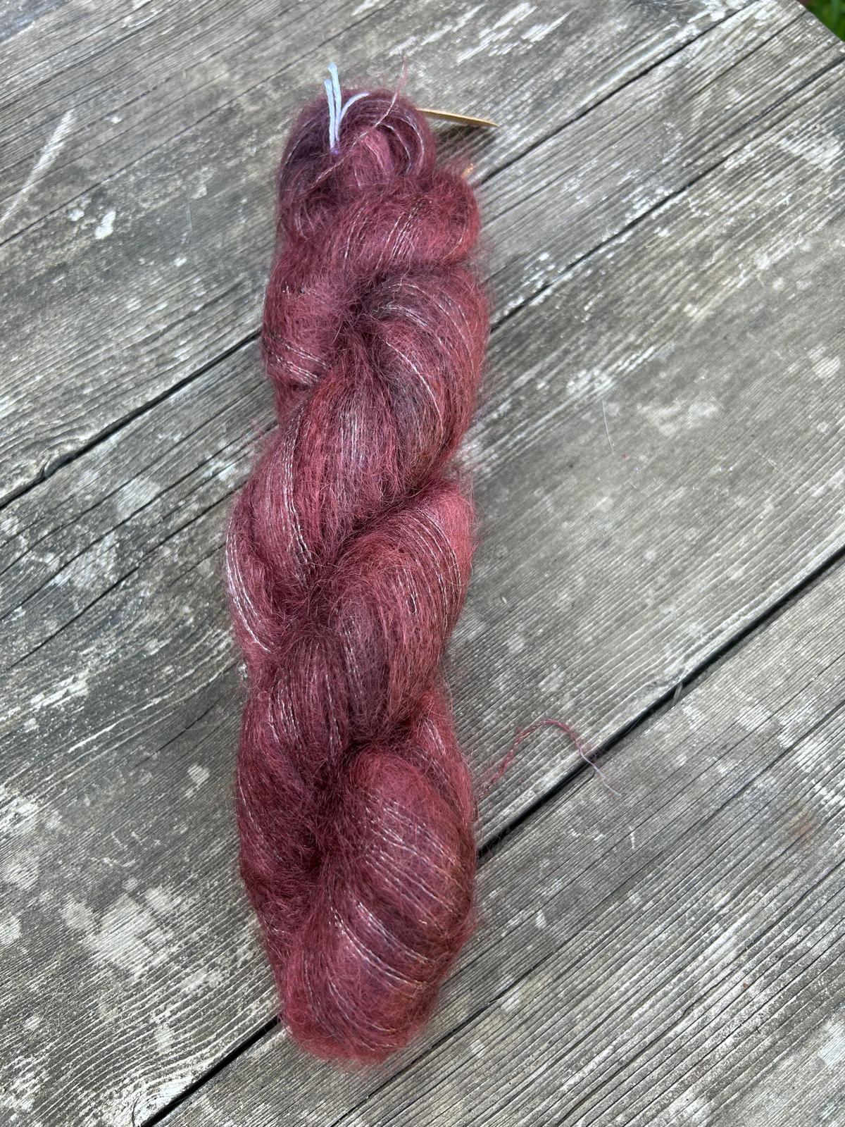 Fil vaporeux en kid mohair et soie lie de vin pour des tricots légers et lumineux.
